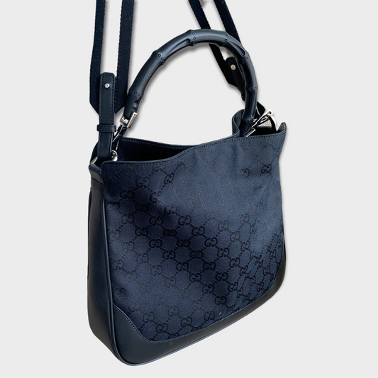 GUCCI Hobo Schultertasche Schwarz Leder & Jacquard 0014095